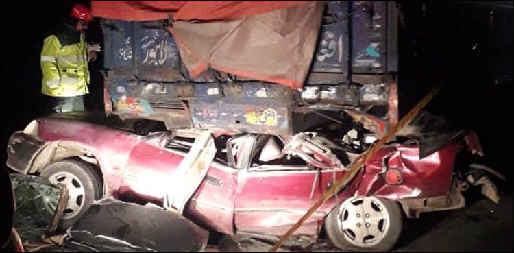 گوجر خان وچ کار کھلوتے ٹرک نال وج گئی، 3بھراواں سنے 4بندے جاں بحق